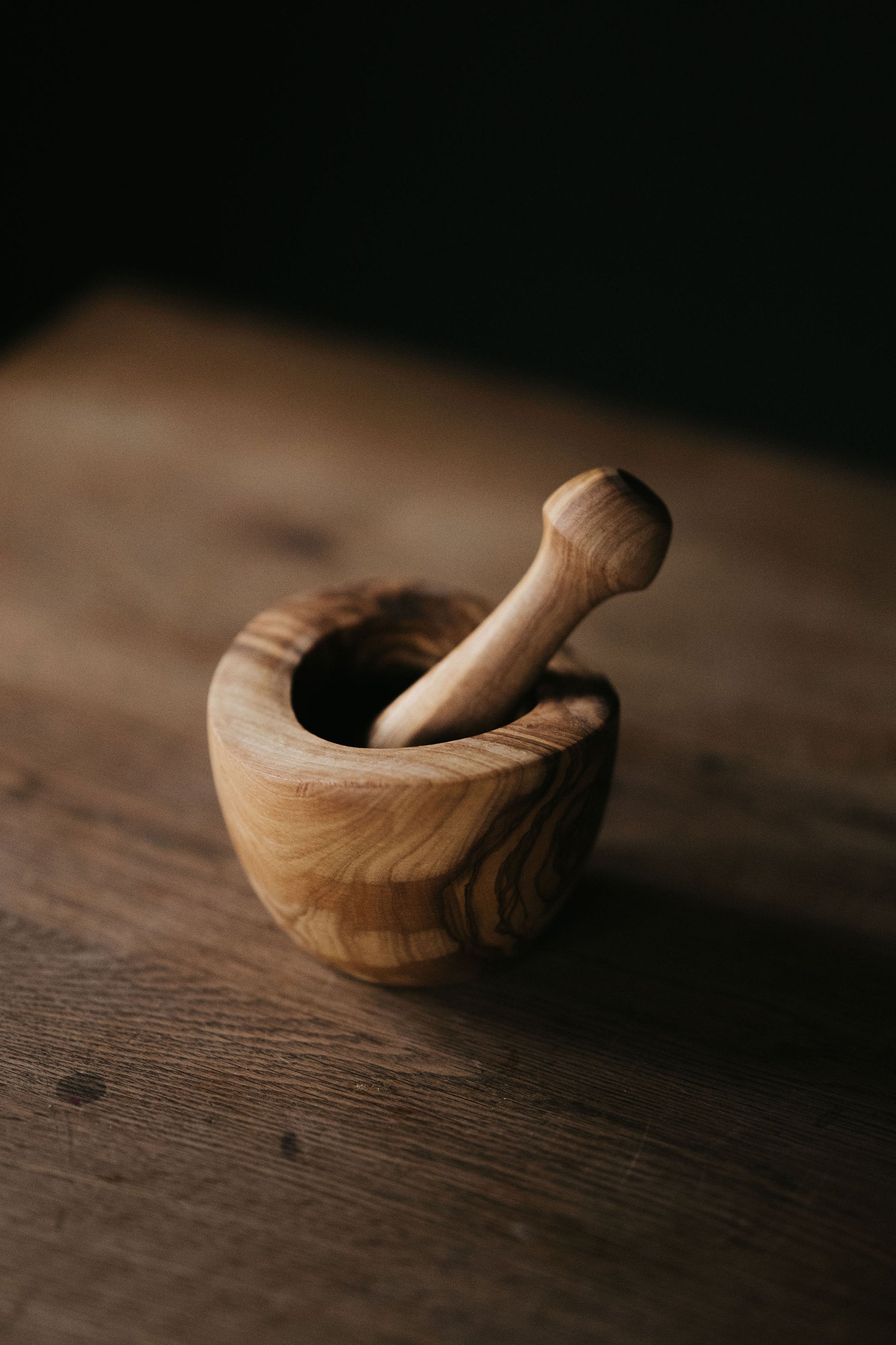 Handgemaakte Vijzel en Stamper van Olijfhout | Medina Mood